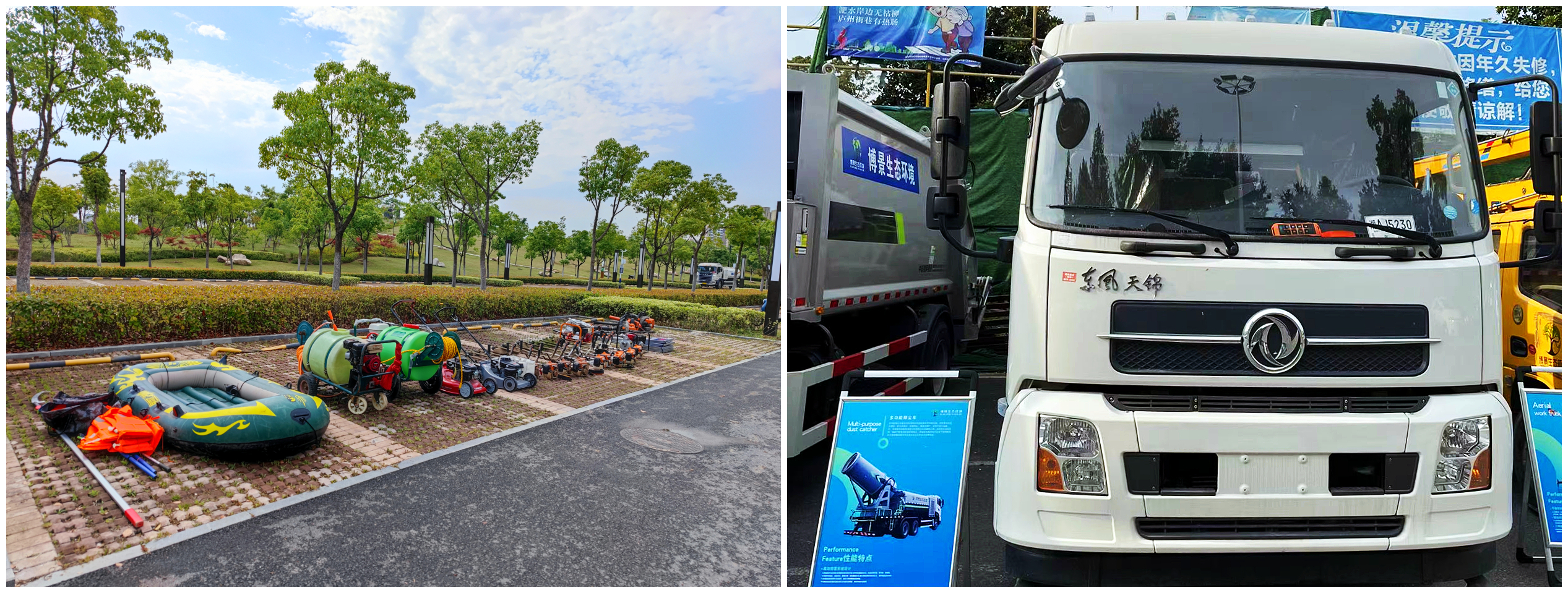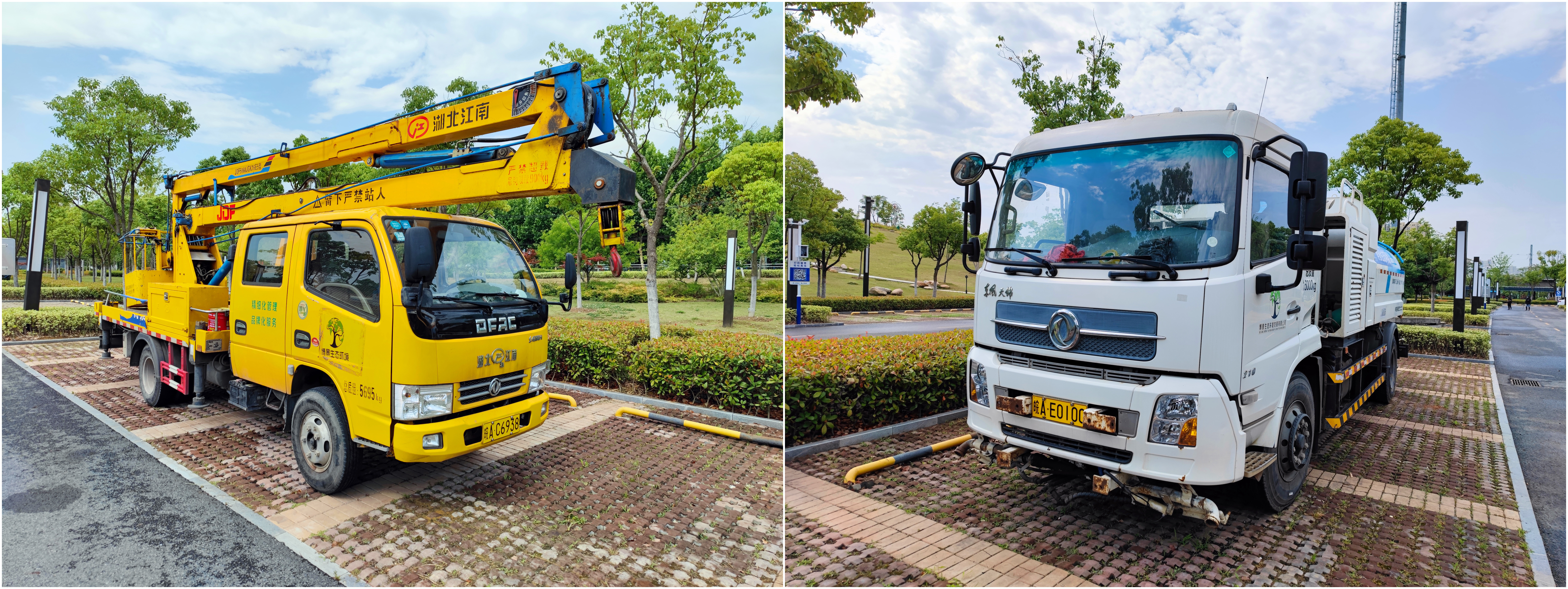 灑水車(chē)1輛、登高車(chē)1輛、多功能抑塵車(chē)1輛、貨車(chē)2輛、皮卡車(chē)1輛;推草機(jī)2臺(tái)、割灌機(jī)10臺(tái)、手推式打藥機(jī)2臺(tái)、手推式打藥機(jī)2臺(tái)、裝載式打藥機(jī)2臺(tái)、鼓風(fēng)機(jī)(樹(shù)木除雪設(shè)備)5臺(tái)、無(wú)人機(jī)1臺(tái)。