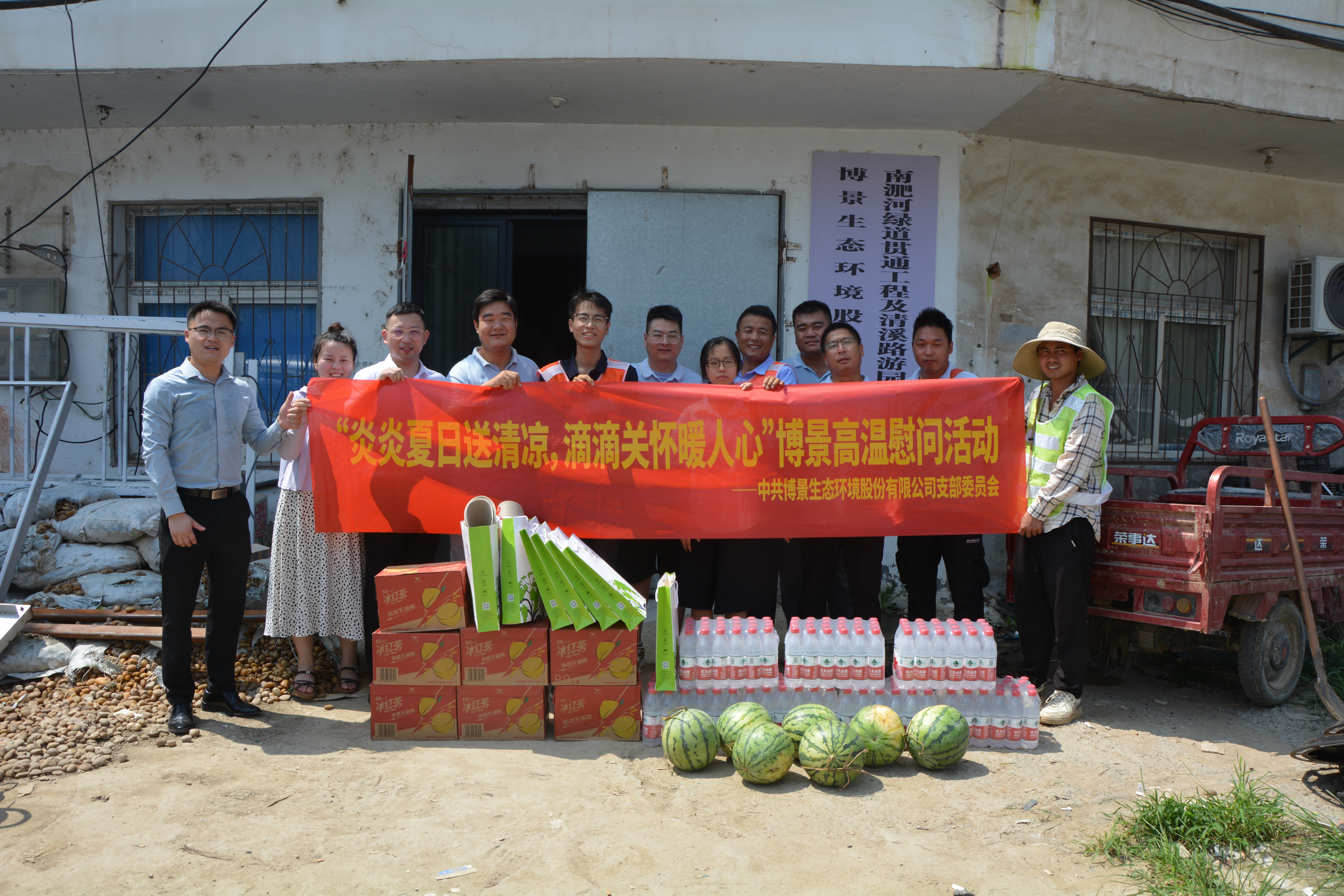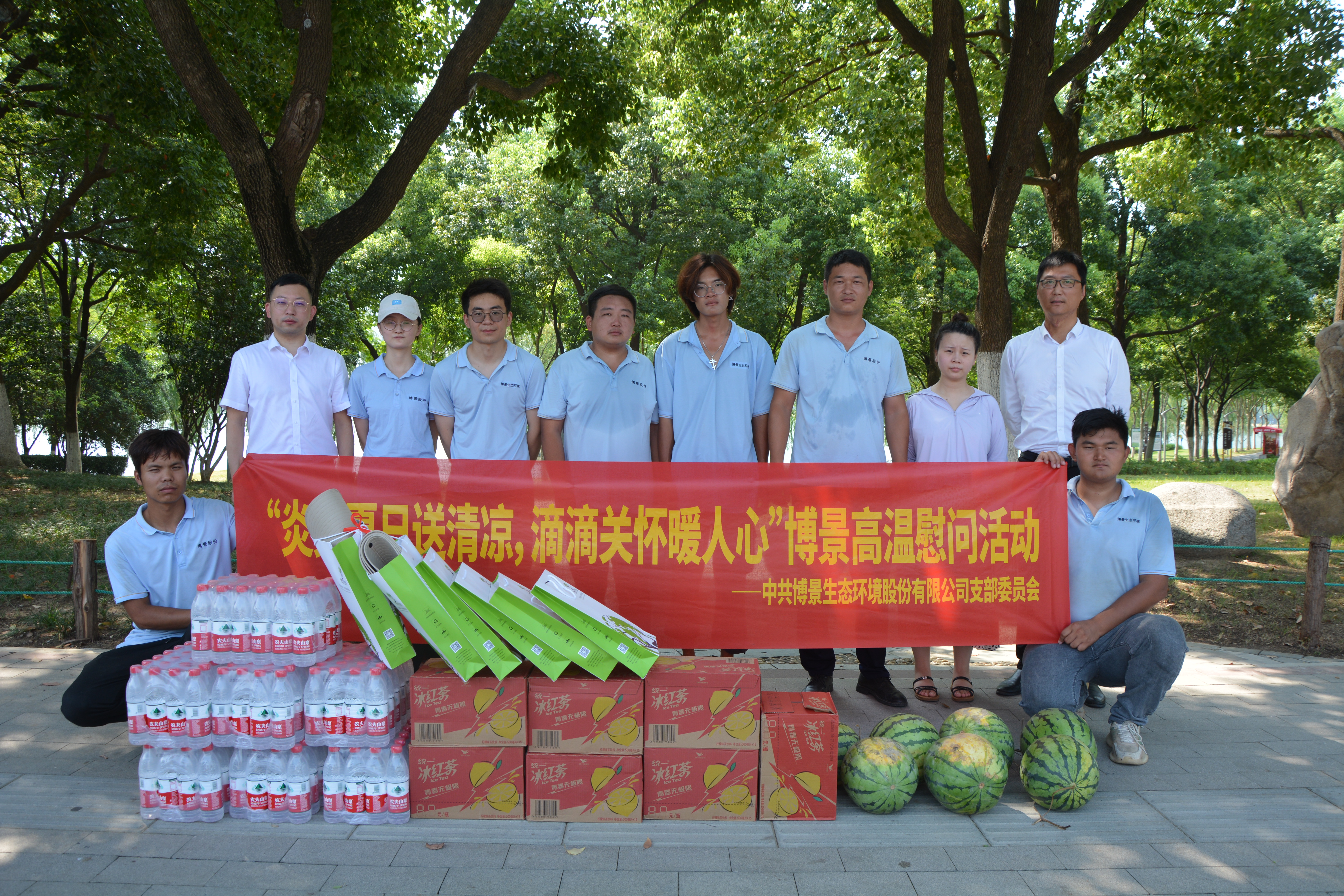 炎炎夏日,高溫酷暑,為做好高溫季節(jié)防暑降溫工作,關(guān)心員工的身體健康和工作情況。8月5號上午,博景生態(tài)環(huán)境股份有限公司黨支部代表,以及公司各部門分管副總下沉到項(xiàng)目一線展開高溫慰問活動,并詢問各項(xiàng)目高溫防暑工作的落實(shí)情況。
